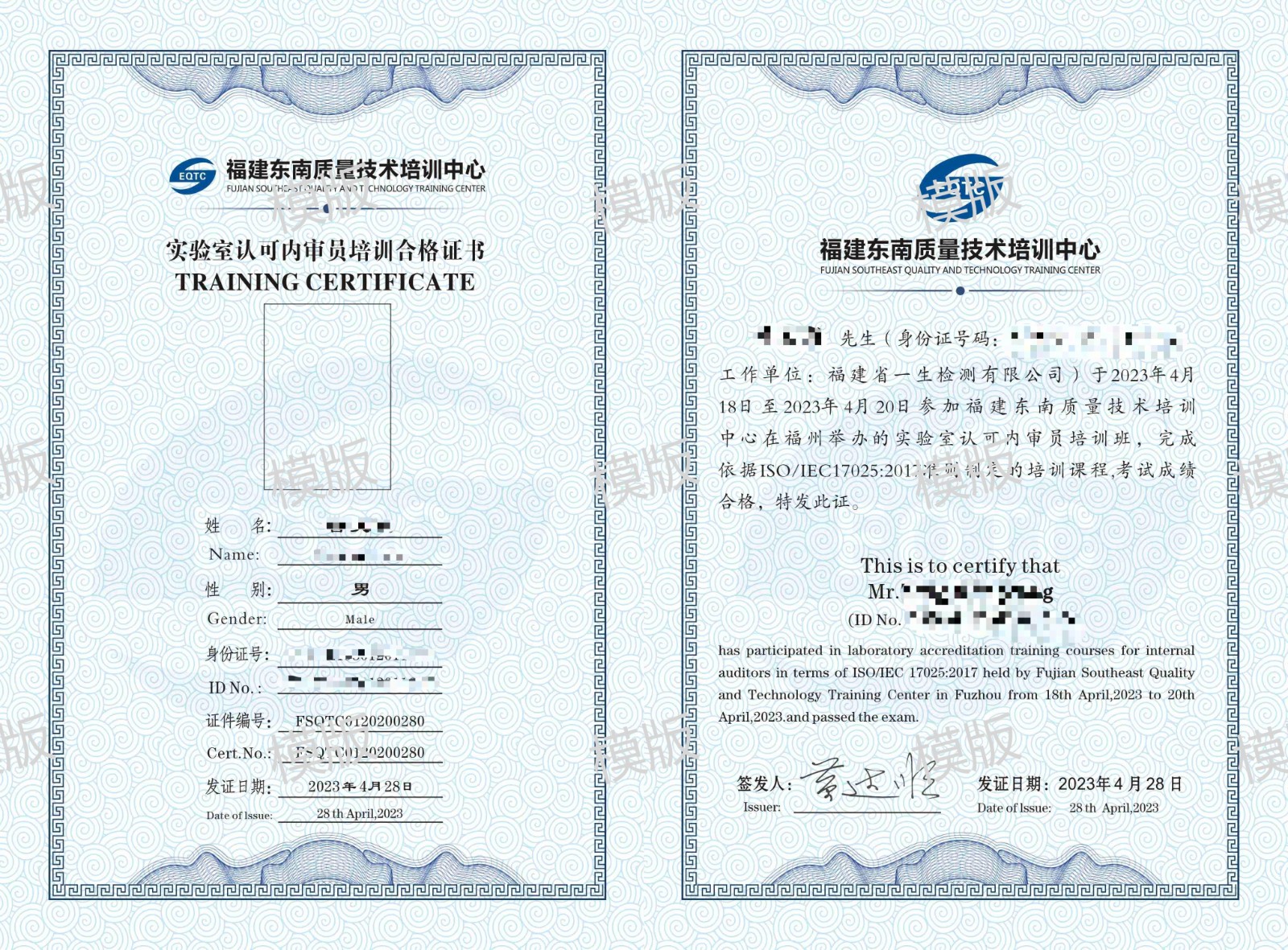 备注:发放 CNAS 内审员证书、CMA 内审员证书